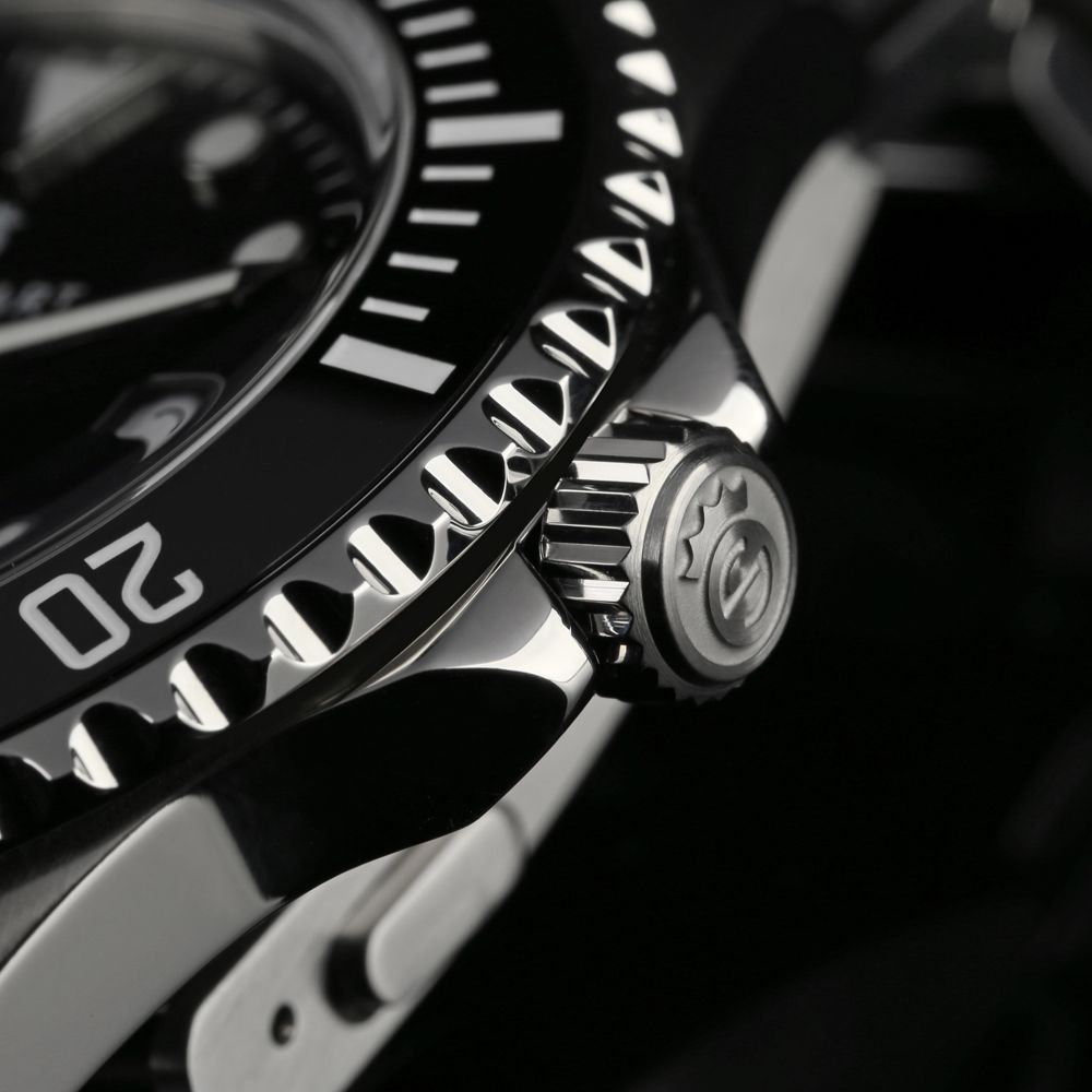 Die STEINHART Ocean One nova vereint modernes Design mit kompromissloser Funktionalität. Ihr neu entwickeltes, flaches und elegant proportioniertes Gehäuse verleiht der Uhr eine zeitlose Ästhetik und sorgt gleichzeitig für höchsten Tragekomfort. Der verbesserte Kronenschutz unterstreicht nicht nur das Design, sondern bietet auch eine optimierte Bedienbarkeit und zusätzliche Robustheit.